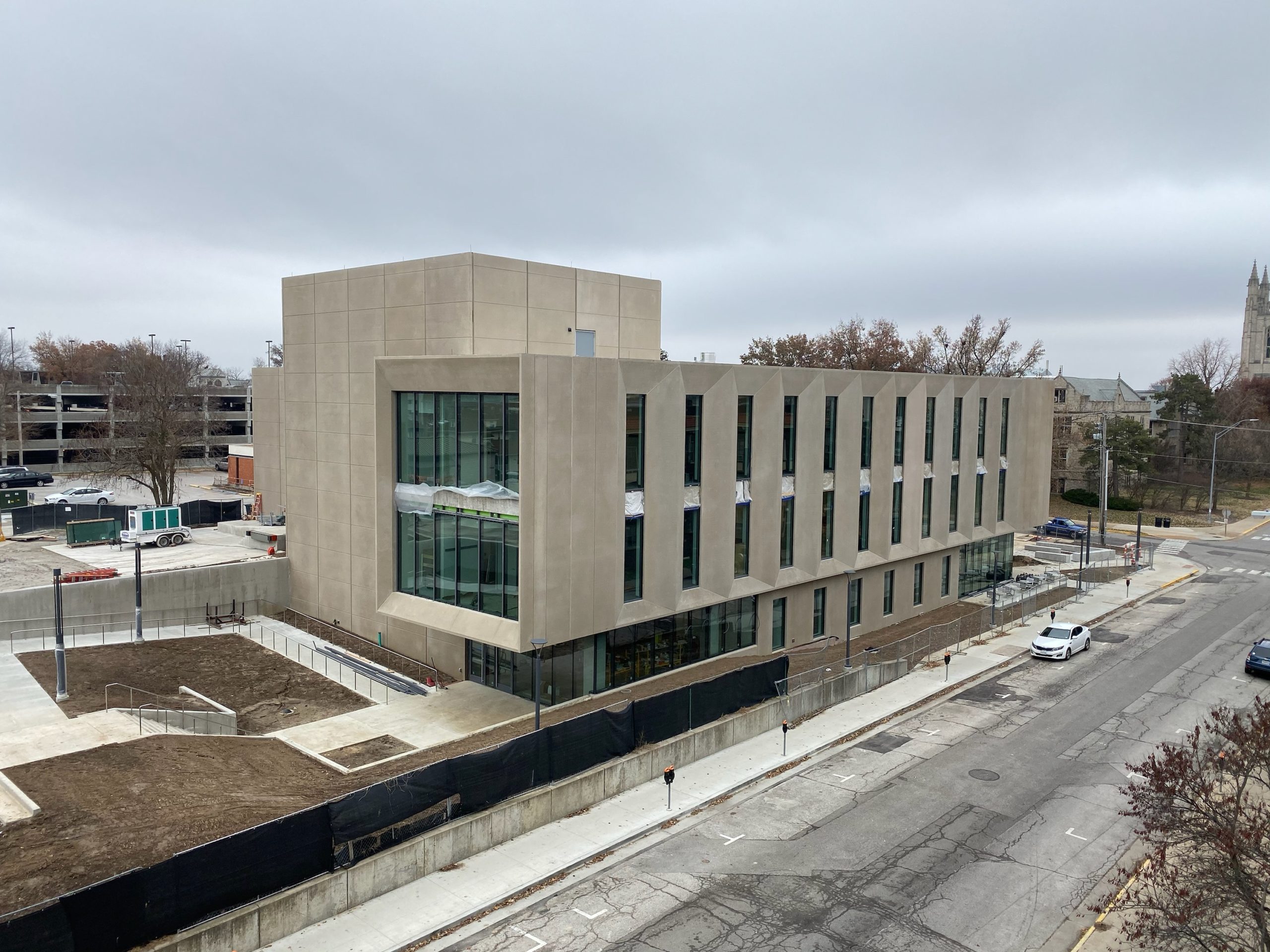 Structurally, the project included cast in place spread footings, cast in place columns and a cast in place superstructure. Other structural components included CMU load bearing walls, precast concrete panel exterior walls, and structural steel columns and a steel framed roof. There are three occupied levels and a fourth-floor penthouse.